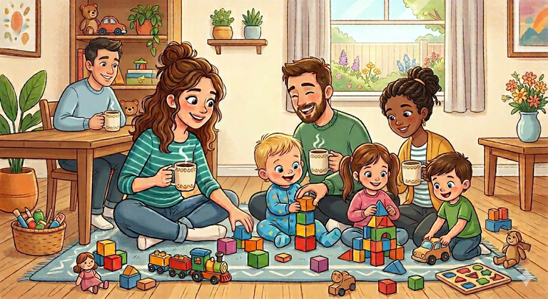 Das kostenlose Angebot richtet sich an alle Eltern oder Großeltern mit Kindern zwischen 0-3 Jahren. Jeden Mittwoch von 15 - 16.30h kann man hier Zusammensitzen, Plaudern, es gibt Anregungen und Spielangebote für die Kleinen und Kaffee und Tee für die Großen. Das Angebot findet fortlaufend statt und kann jeder ohne Anmeldung nutzen.